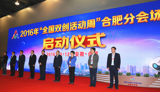 2016年10月12日上午,“全国双创活动周”合肥分会场活动启动仪式在安徽国际会展中心举行,与国家主会场时间同步。省委常委、常务副省长陈树隆宣布2016年“全国双创活动周”合肥分会场正式启动。省委常委、合肥市委书记吴存荣,省政府副秘书长李必方,省发改委党组书记、主任张韶春,省经信委副主任吴韦人,省科技厅副厅长罗平,省财政厅副厅长孟照红,省人社厅副厅长刘少华,合肥市委常委、常务副市长韩冰,合肥市委常委、秘书长韦弋,合肥市副市长吴春梅等省市领导出席启动仪式并巡展。