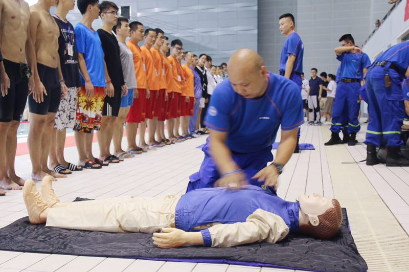 救生演练特邀中国红十字会和蓝天救援队的教官,教官首先向参训人员讲解水上救生相关知识,如发现溺水者后如何报警求助、如何进行施救、如何利用救生工具、如何将溺水者救助上岸、如何进行急救心肺复苏等救生基本知识、步骤和方法。随后,教官用“假人模特”手把手地进行实操,演示进行心肺复苏实践操作,并让每一名参训人员实际体验和感受。演练中,全体人员积极参与,分工合作,默契配合。在教官的指导下,利用救生工具进行了实际演练,圆满完成了演练活动。