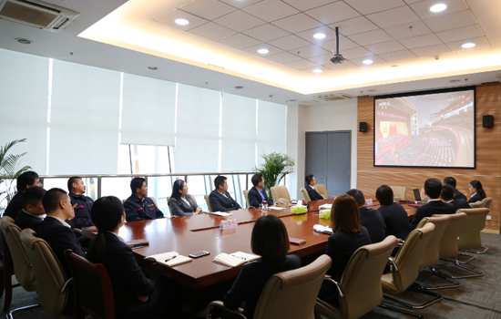 根据政投公司党委统一部署,政文会展党支部组织全体党员于10月18日上午在合肥滨湖国际会展中心行政楼会议室通过央视网直播集体观看党的十九大开幕会。