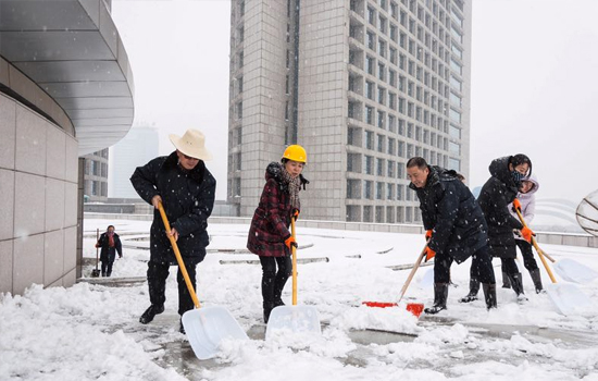 2018127日正值周末,窗外风雪交加、寒风凛冽,当人们还在温暖的家中时,公司董事长罗钦、总经理黄建军已赶到各个项目慰问一线扫雪员工,并与各个扫雪小组一起抗战积雪。恶劣的天气没有影响政文外滩物业公司团队清理积雪的热情,在罗董事长、黄总的带领下,各项目部组织员工对自己主管的片区进行认真清扫,确保能够在业主上班前让各主干路内的行人及车辆畅通无阻,给业户带来的影响降至最低。
