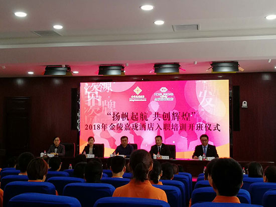6月1日上午,安徽泓瑞嘉珑酒店在省邮电学院报告厅举办了“2018年泓瑞嘉珑酒店员工入职培训开班仪式”。政投公司党委委员、董事、副总经理、嘉珑酒店董事长杨兴武,南京金陵酒店管理公司副总裁李成勇,金陵新品牌事业部总监杨志军以及酒店管理团队,新入职员工共计65人参加了本次开班仪式。