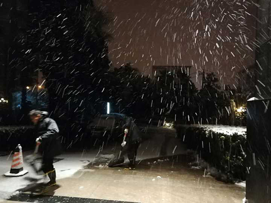 酒店组织工作人员及应急队伍约20余人次,将融雪剂撒满酒店的主干道、车道,同时,及时清扫积雪,确保车辆出行不受影响,保障行车安全。工程部开展室外燃气房、高空悬挂物安全检查,保障各类设施设备安全运行。
