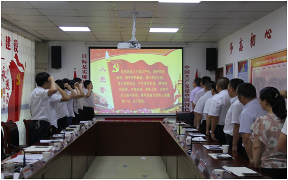 在庄严的国歌声中,主题党日活动拉开序幕。全体党员深入学习习近平总书记在“不忘初心