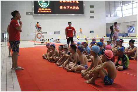 暑期期间,青少年儿童溺水事故易发,为增强大家在游泳时的安全意识,合肥体育中心联合嘉和苑关爱未成年人联盟,在合肥体育中心游泳馆设立了防溺水公益课堂,为近300名小学生普及防溺水知识,敲响安全警钟。活动现场,合肥体育中心已有六年教龄的杨之冰教练,给小朋友讲解了夏季游泳注意事项和急救处理常识,还带孩子们下水体验,在水中练习呼吸。游泳时如果遇到抽筋非常危险,可能导致溺亡,因此,教练带大家反复练习抽筋自救的方法。