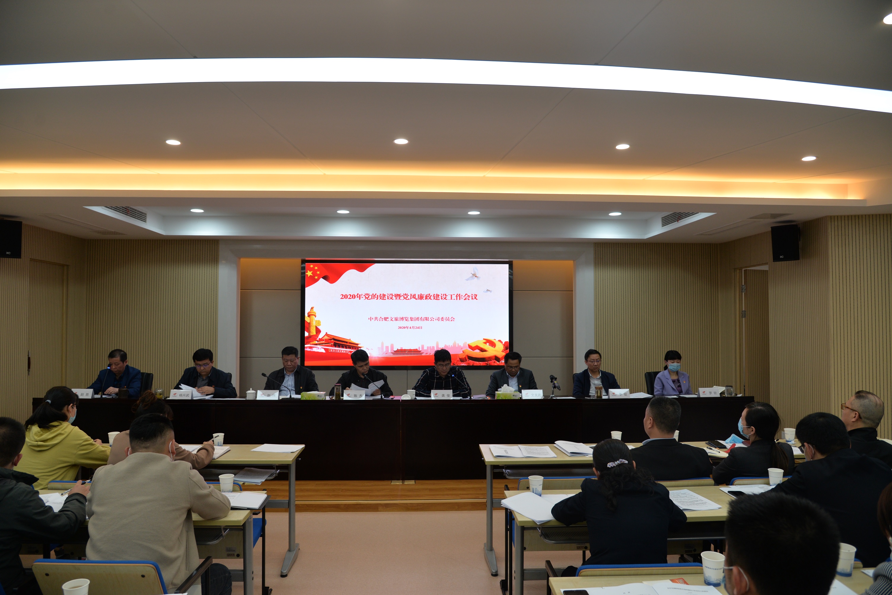 2020年4月24日下午,华体会(中国)召开2020年党的建设暨党风廉政建设工作会议。集团党委班子成员、各党支部委员、集团本部中层干部、所属企业经营班子成员、集团及所属企业党群工作部负责人、监察室负责人共40余人参加会议,会议由集团公司党委副书记、董事、总经理龚俊同志主持。