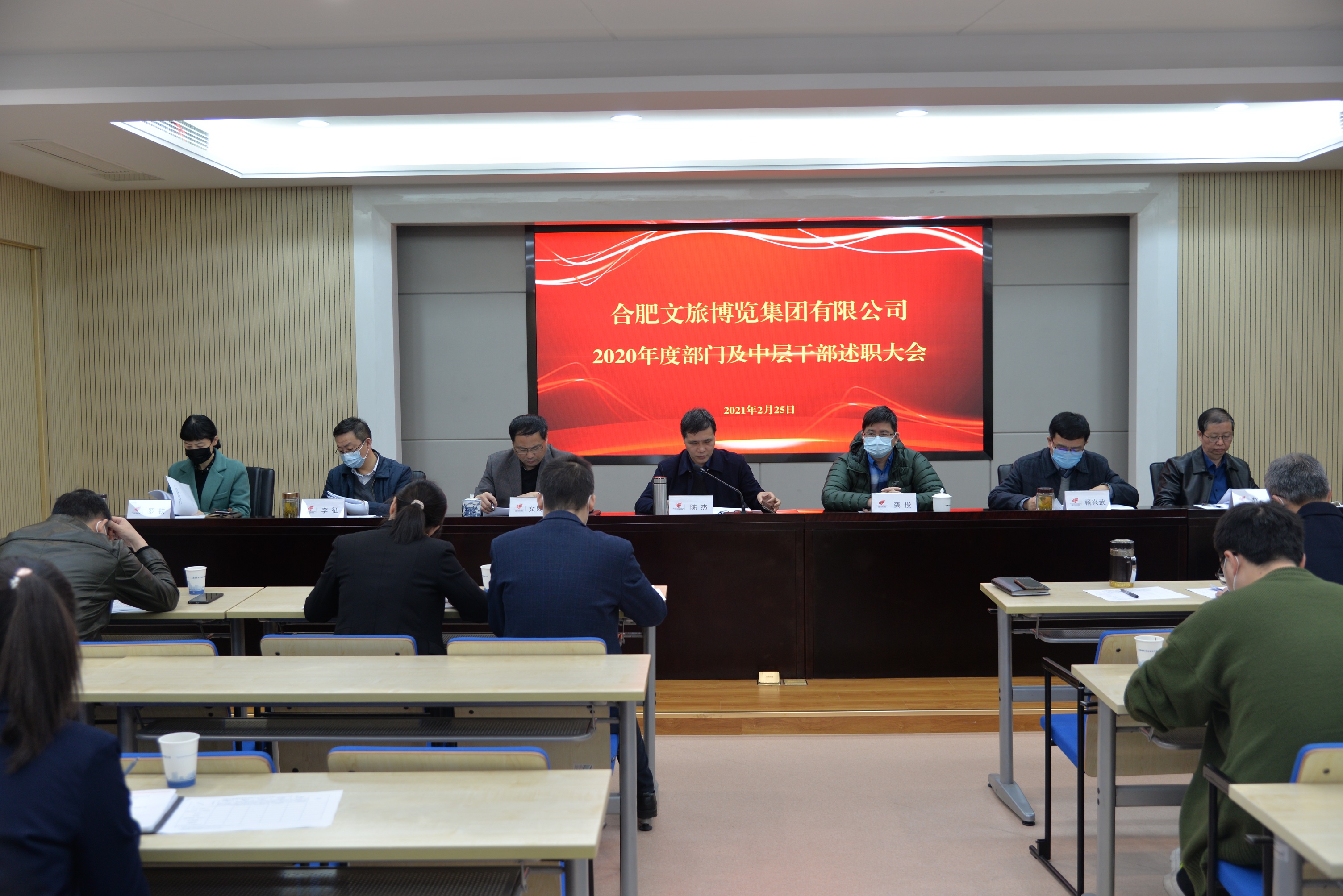为全面考核2020年度集团公司各部门工作情况,切实提高中层干部履职能力,增强各部门创先争优意识,2月25日上午,集团公司召开2020年度部门及中层干部述职会。会议由集团公司党委书记、董事长陈杰同志主持,集团公司党委副书记、董事、总经理龚俊等领导班子成员,集团本部中层干部及考评小组成员参加会议。
