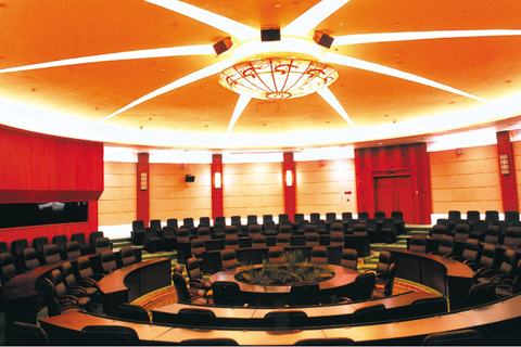 安徽国际会展中心建设标准和服务功能达到了国际先进水平,能够满足大型国际性会议、展览会、展销会的基本要求。其中会议部分包括能容纳1500人会议或1000人宴会的大型多功能厅、具有五种同声翻译系统的320座会议厅、具有两种同声翻译系统的186座会议厅以及多个小型会议室、贵宾室、商务洽谈室、休息室等。展览部分拥有可设置2500个标准展位的五个室内展厅和20000平方米的室外展场。另设有商务中心、中西餐厅、地下停车场等多种配套服务设施。安徽国际会展中心总体设计通过国际招标,由法国欧博建筑与城市规划设计公司承当,建筑整体简洁流畅、气势恢弘,具有独特的创造性和较高的文化品位。