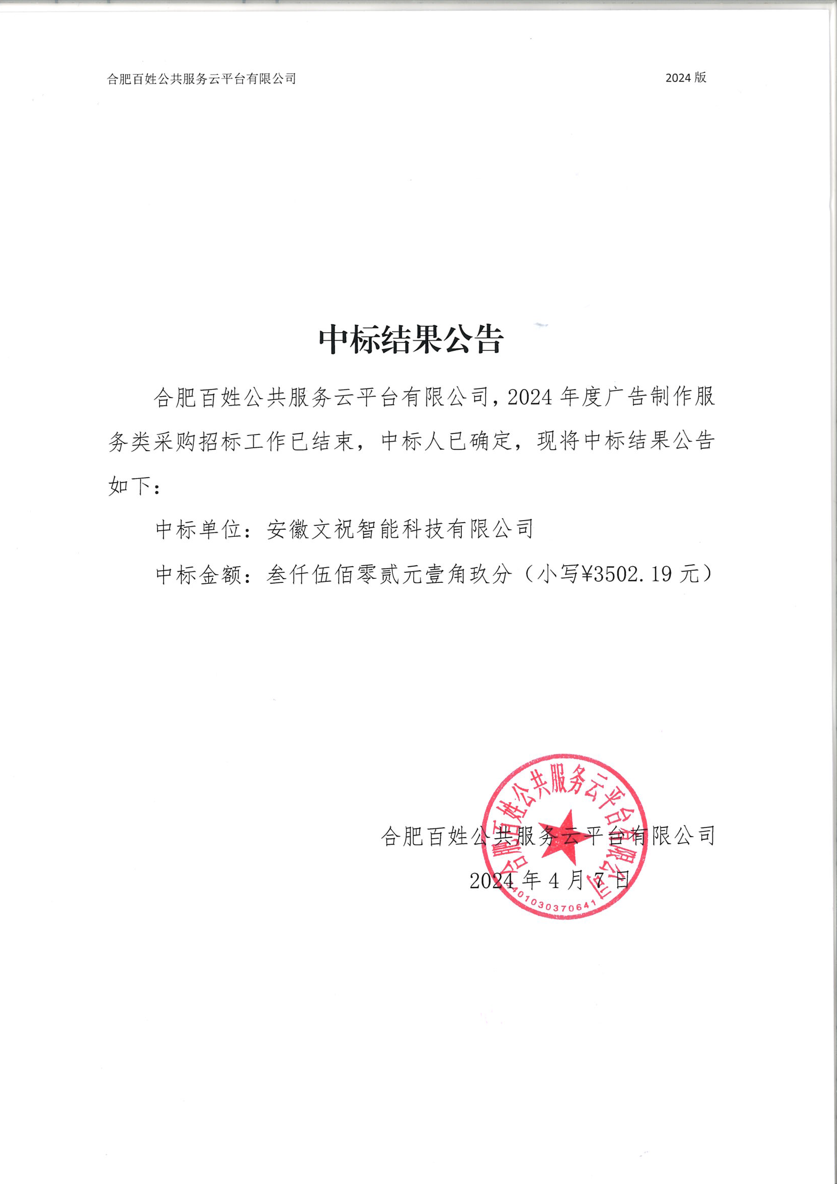 合肥百姓公共服务云平台有限公司广告制作服务中标公告