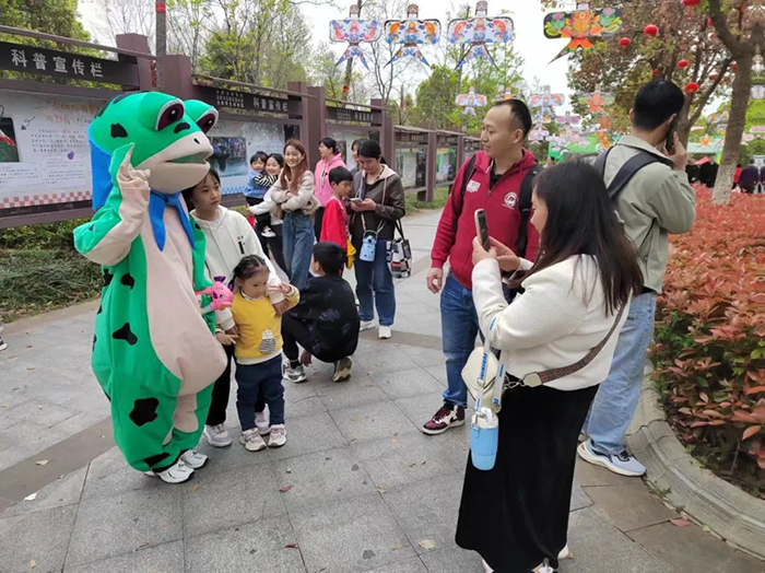 合肥野生动物园在假期内开展了“追风的孩子一起去合野撒欢”主题活动。现场风筝长廊非常吸睛,深受游客欢迎。另外现场还有青蛙NPC巡游,每天两场为游客随机发送风车和奶糖,吸引大批游客合影留念。