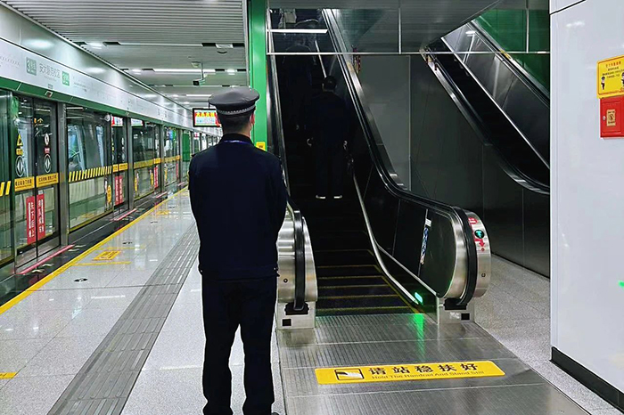 在合肥地铁,像这样的飞奔而上、热切地询问、有力地搀扶、温暖地护送……都是工作在一线的安检员们最真实的写照!坚持立足本职,扎实工作,用心服务的同时,登安公司员工们在工作中践行“五心服务,微笑安检”的服务理念,让地铁里处处透着温暖,时时都有感动。