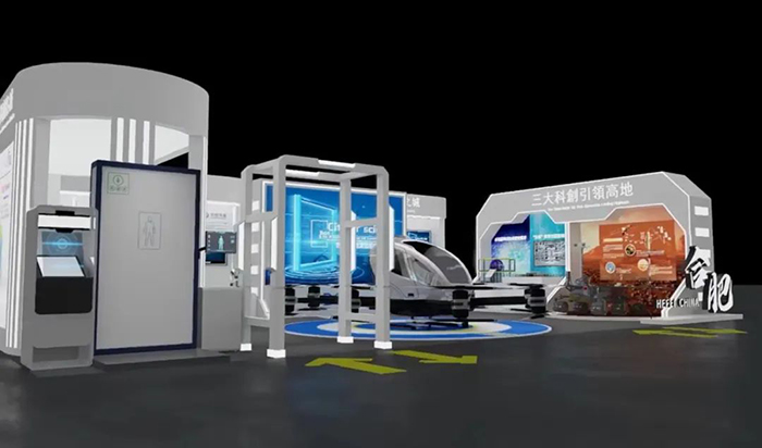 本次科创展合肥市以特装展位形式,设置了总面积为180平方米的合肥市主题展厅,共有安徽省东超科技有限公司、科大讯飞股份有限公司、孪生科技、科大硅谷等合肥市重点产业链优质企业参展,布展以数字与实体相结合的方式呈现合肥最新科技创新成果。