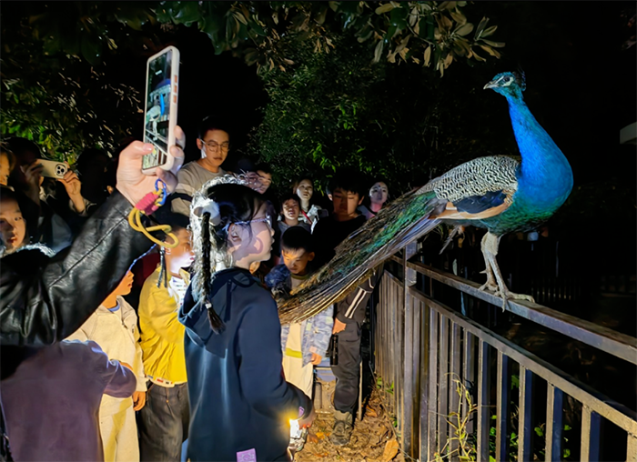 活动期间,我们首创开启了动物园奇妙夜,每晚上限50组家庭,获得在动物园夜游+露营体验的机会,邀请国内知名的动物专家近距离讲解动物故事,可爱憨厚的小熊猫,各种稀奇的爬行动物,还有站在高处的孔雀,都给孩子们留下了难忘的印象,在90分钟的参观路线中,如此近距离的了解自然中动物奥秘,就是一堂深刻的动物科普课。