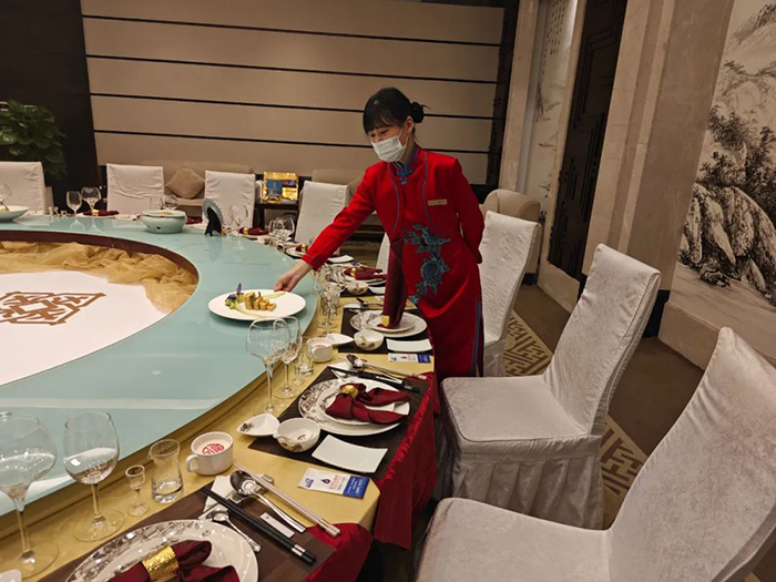 2022年末,集团与马鞍山文旅合作的含山枕水涧项目刚开业没多久,用工紧张,需要酒店给予人员支撑,但当时病毒肆虐,在人员安排方面出了难题。就在一筹莫展之时,黎洁主动请缨支撑含山项目。在项目上,她既当服务员、传菜员,又当清扫员、保洁员。很多人认为她坚持不了多久,但她小小的身板却爆发了大大的能量,原计划支援一个星期,黎洁坚持了近两个月。很多人问她是怎么坚持过来的,黎洁笑笑说,“我只要想到我是代表酒店的,我的表现就是酒店形象,我就有无穷的力量。”