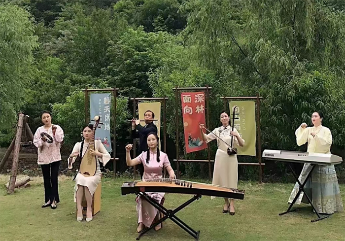 位于庐江县的云里安凹开展了“跟着演艺去旅游”,邀请了安徽乐团驻场表演,尽享清幽好时光。相对于人挤人的旅行团扎推,生一炉火、烹几盏茶,约三五好友,偷得浮生半日闲,成了都市年轻群体的假期的全新打开方式。在“全域旅游”战略加持下,“花园小城,诗意庐江”成为了年轻人身边的诗意。