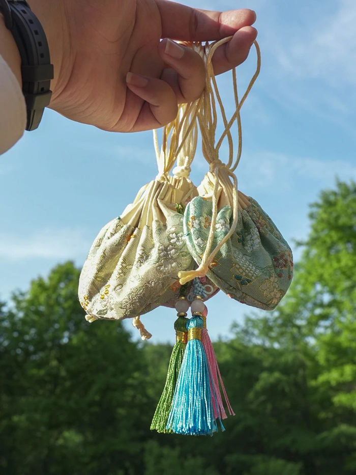 古人佩戴香囊的历史可以追溯到商周时期,红绶带,锦香囊,为表花前意,殷勤赠玉郎。