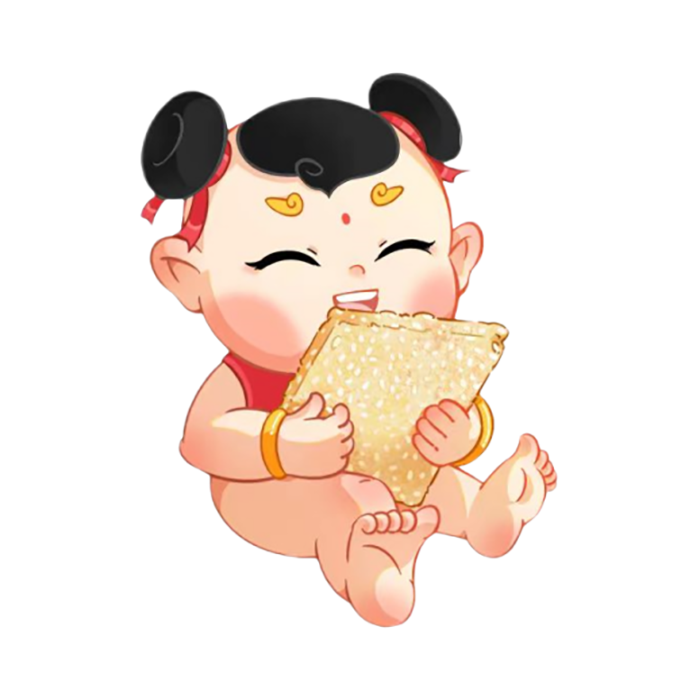 我是二娃,是跟着大娃姐姐的小跟班,我手上拿着的是咱们合肥的新四大名点-寸金,它可是给我提供能量的能量棒哦,我可爱吃了呢。