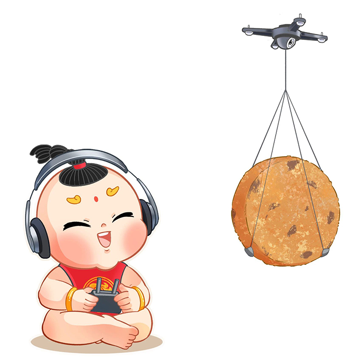 我是三娃,我喜欢电子产品,喜欢新兴的东西,别忘了咱们合肥可是创新高地呢,瞧我用无人机运来的合肥新四大名点-烘糕,酥酥脆脆,营养美味。
