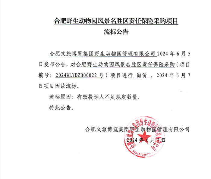合肥野生动物园风景名胜区责任保险采购项目流标公告