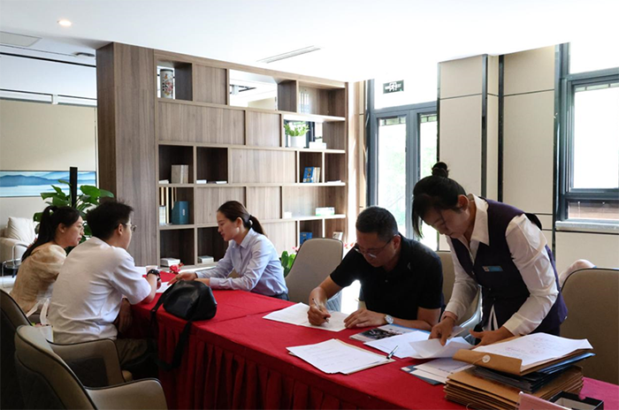 为迎接每一位业主家人的到来,在交房前,文渊府全体职工早早做好准备,从确定现场的每一步流程、到处处可见的交房标识;从欢迎归家的桁架,到随处可见的装饰,每一处细节皆遵循严苛标准,彰显国企物业的暖心服务。交付大厅内,工作人员井然有序,核验资料、手续办理、前往新房验收,用认真且细致的态度,为业主家人们营造一场满怀暖意与温情的收房体验。