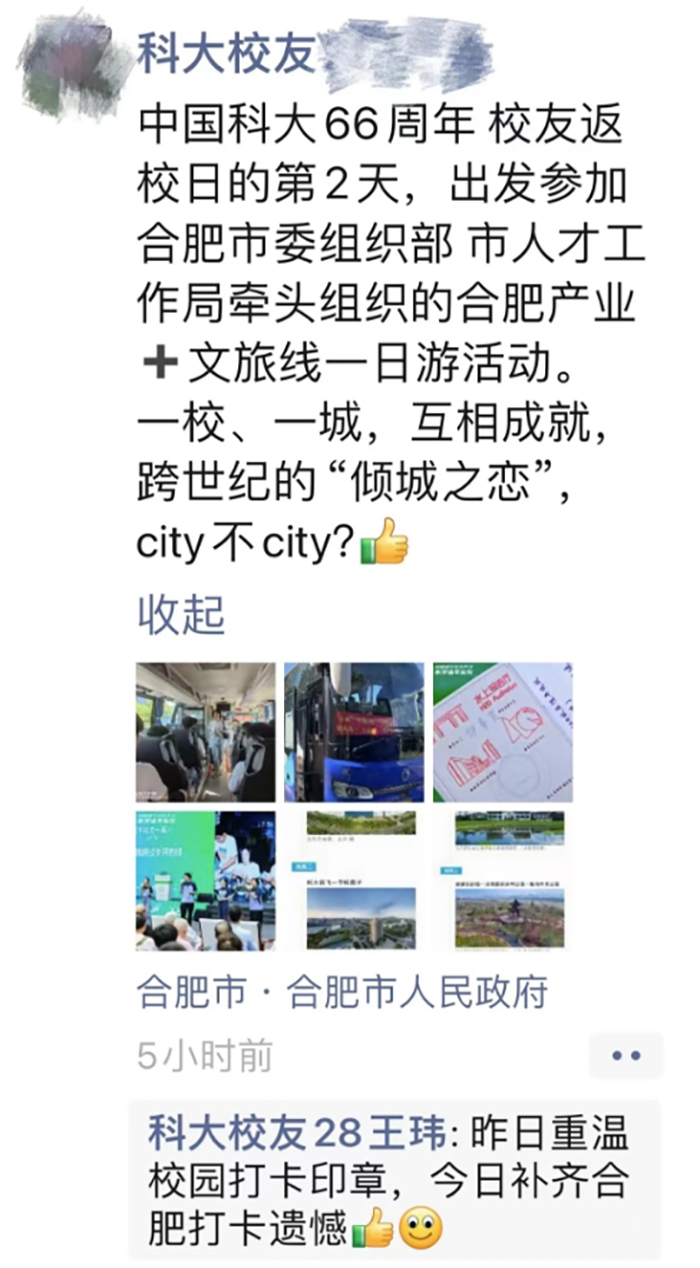 一次独特的城市体验之旅,让中国科大校友们不仅感受到了合肥的科创速度,更是让他们体验到了合肥的城市温度。