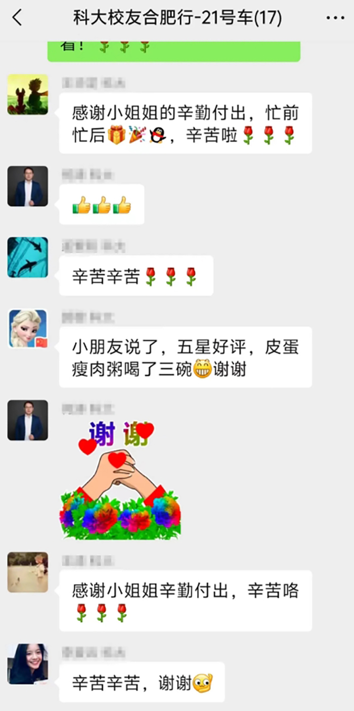 此次体验,合肥派出专车接送,提供专人服务,更好地保障中国科大校友的参观体验。中国科大校友分6批前往安徽创新馆、蔚来F1工厂、维信诺生产基地、三河古镇、姥山岛等地,与重点企业面对面交流,与人文美景点对点互动。