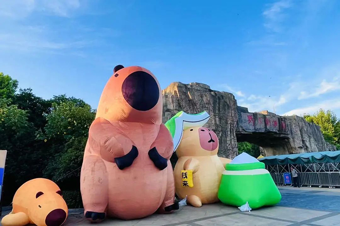 在巨型卡皮巴拉的身边
