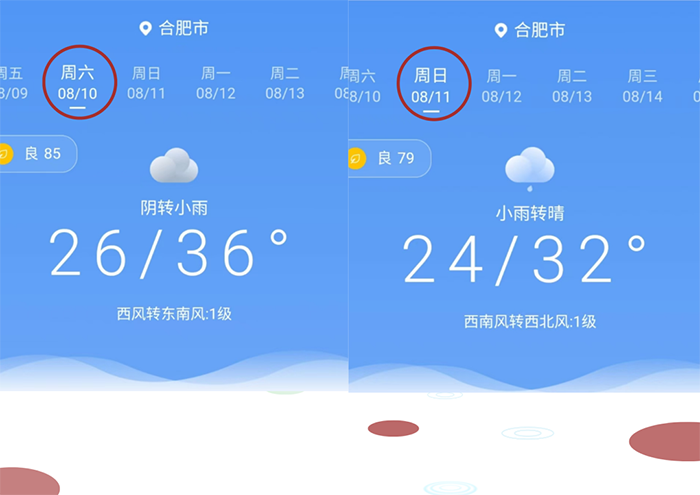 根据气象台发布的天气预报显示,8月10日/11日为阴转小雨和小雨转晴天气,最高气温36摄氏度,您可按个人习惯增减衣物,请注意出行安全和防雨、防暑。