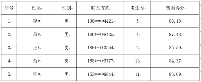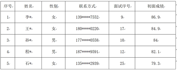 三、面试(初试)前5名进入下一轮复面环节,复面相关事宜另行通知,请保持电话畅通。