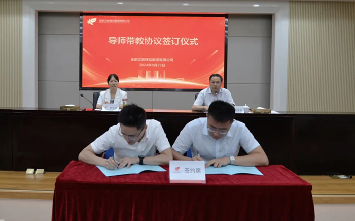 为了做好新员工全周期跟踪培养,集团实施“导师带教”计划,为新员工一对一匹配入职导师。开班仪式上,新员工逐一进行自我介绍。导师代表发言分享工作经验和感悟,鼓励新员工脚踏实地、多学多问。现场,导师代表与新员工代表签订了“导师带教”协议。