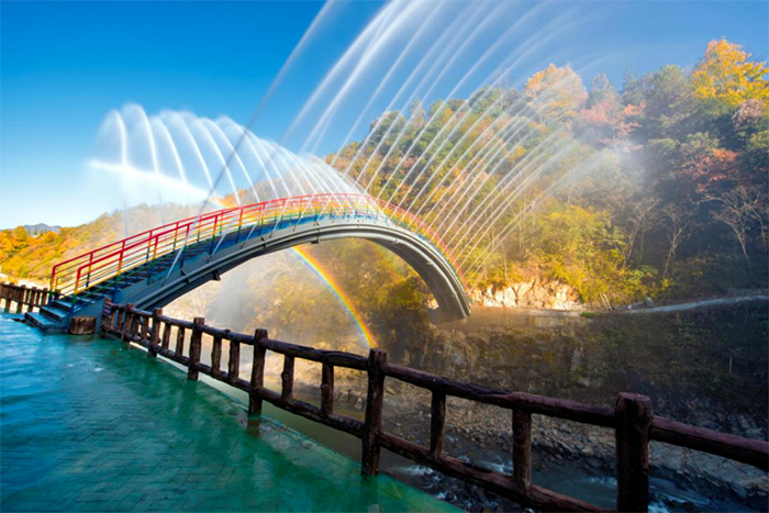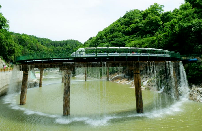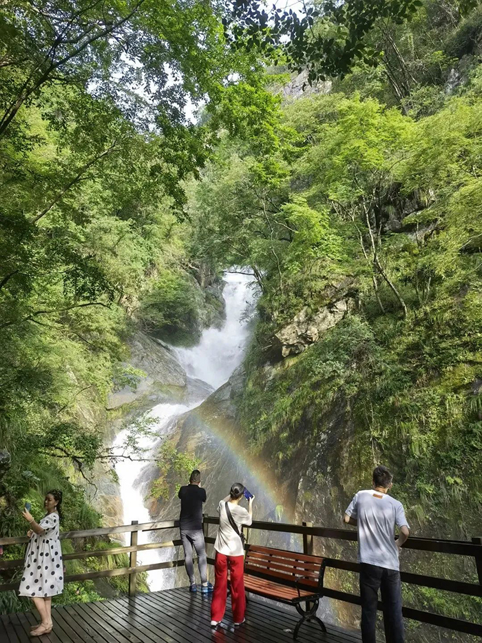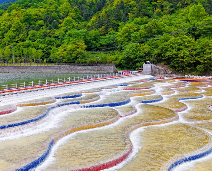 拥有网红打卡点——九彩瀑布龙鳞坝夏天休闲嬉水的绝佳选择360度水帘景观、玩水圣地还有随风舞动的彩虹幕墙随处可见的彩虹绿色低碳的水动力火车简直是大山中的游乐场yyds
