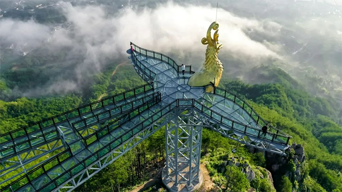 这里不仅山清水秀,别具一格来到这里仿佛到了人间仙境凤凰之恋玻璃观景平台是华东乃至全国最大最具特色的异型玻璃观景平台杜鹃与云海、日出、彩霞等交织在一起,美不胜收还有各种各样的娱乐项目往返索道、彩虹桥、喊泉等