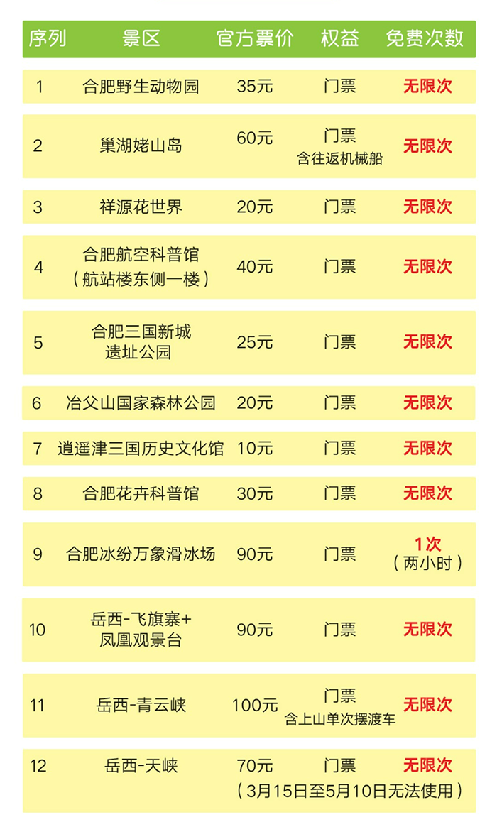 加量不加价的合肥文旅年票