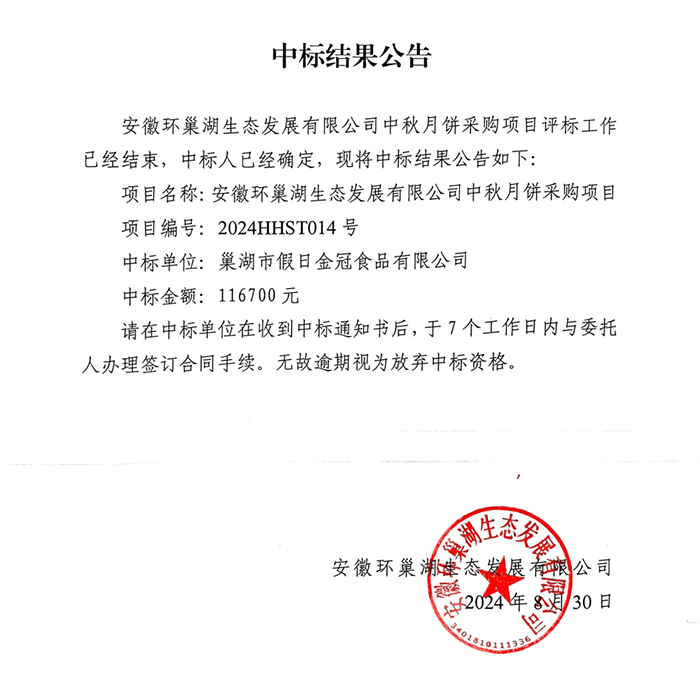 安徽环巢湖生态发展有限公司中秋月饼采购项目