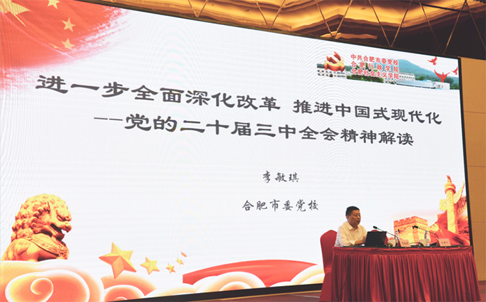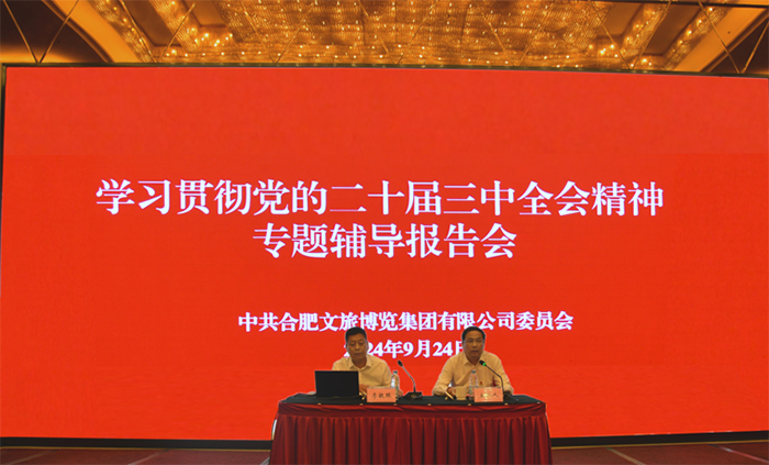 为全面深入学习贯彻党的二十届三中全会精神,9月24日下午,集团党委举行学习贯彻党的二十届三中全会精神专题辅导报告会。本次报告会特邀中共合肥市委党校(合肥行政学院)李敏琪教授作报告。集团党委副书记、董事、工会主席文良武主持会议。集团领导班子成员、外部董事、本部中层管理人员、所属企业领导班子成员、各党支部全体党员等共200余人参加。