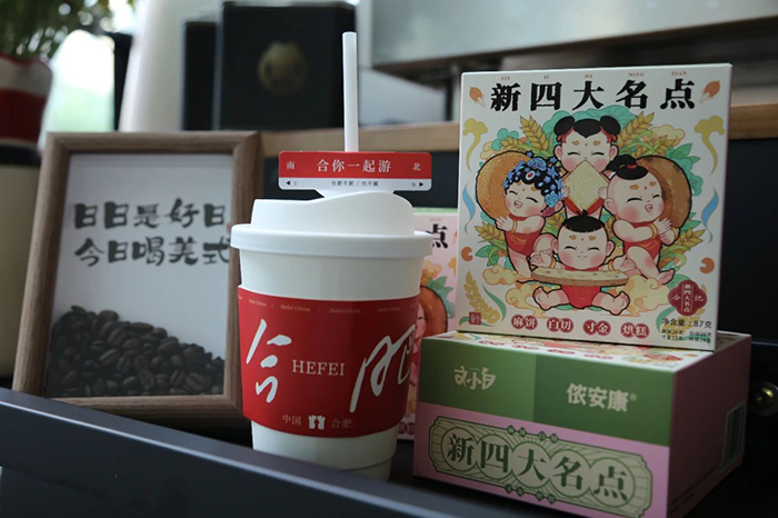 不仅如此,合肥文旅连锁酒店以“咖”为媒,“啡”常巧妙地将文化、旅游与合肥新四大名点相结合,融入合肥文博集团开发的周边文创元素,独家设计的特色咖啡杯,引来大家蜂拥打卡。