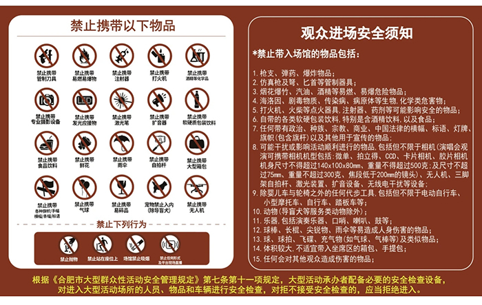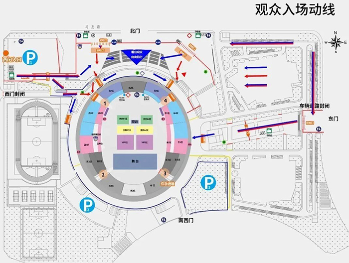 入口引导:1.北门观众入口:习友路2.东门观众入口:潜山路3.西门观众入口:体育馆西路