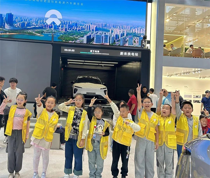 国庆长假第三天,合肥文博研学携手合肥滨湖国际会展中心,为小朋友们带来了一场新能源汽车展研学活动。在研学活动中,小朋友们进入国际新能源汽车展会现场,深入蔚来汽车展区,近距离探索合肥制造汽车黑科技,感受未来交通的魅力。