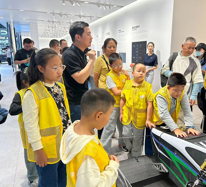 跟随研学导师小朋友进入车展现场化身小小侦探家了解“霸都”合肥如何成为新能源汽车之都化身小小工程师亲手制作手摇发电机进入蔚来展区,化身小小记者探秘全铝车身的铆接技术智能化RGV立体库以及全自动智能设备和创新工艺等蔚来黑科技
