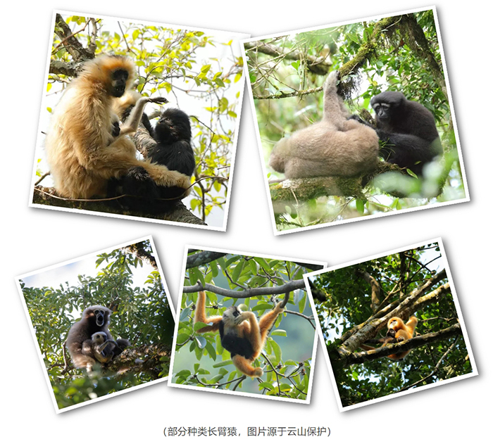 在茂密的热带雨林中,长臂猿以其悠长的双臂和敏捷的动作穿梭于树梢之间,以植物的嫩叶、嫩芽、野果为食的它们,通过“臂行”的方式将与大自然的“猿粪”带到千里之外,帮助着土壤的疏松和养分的循环,支持着森林的健康发展,是森林的守护者和生物多样性的维护者。因此,保护长臂猿就像撑开了一把保护伞,间接保护着树木以及生活在同一区域的其它生物。守护长臂猿至关重要。
