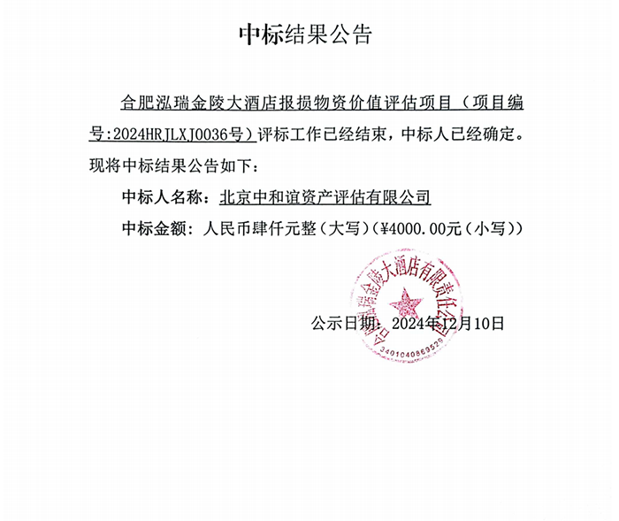 合肥泓瑞金陵大酒店报损物资价值评估项目