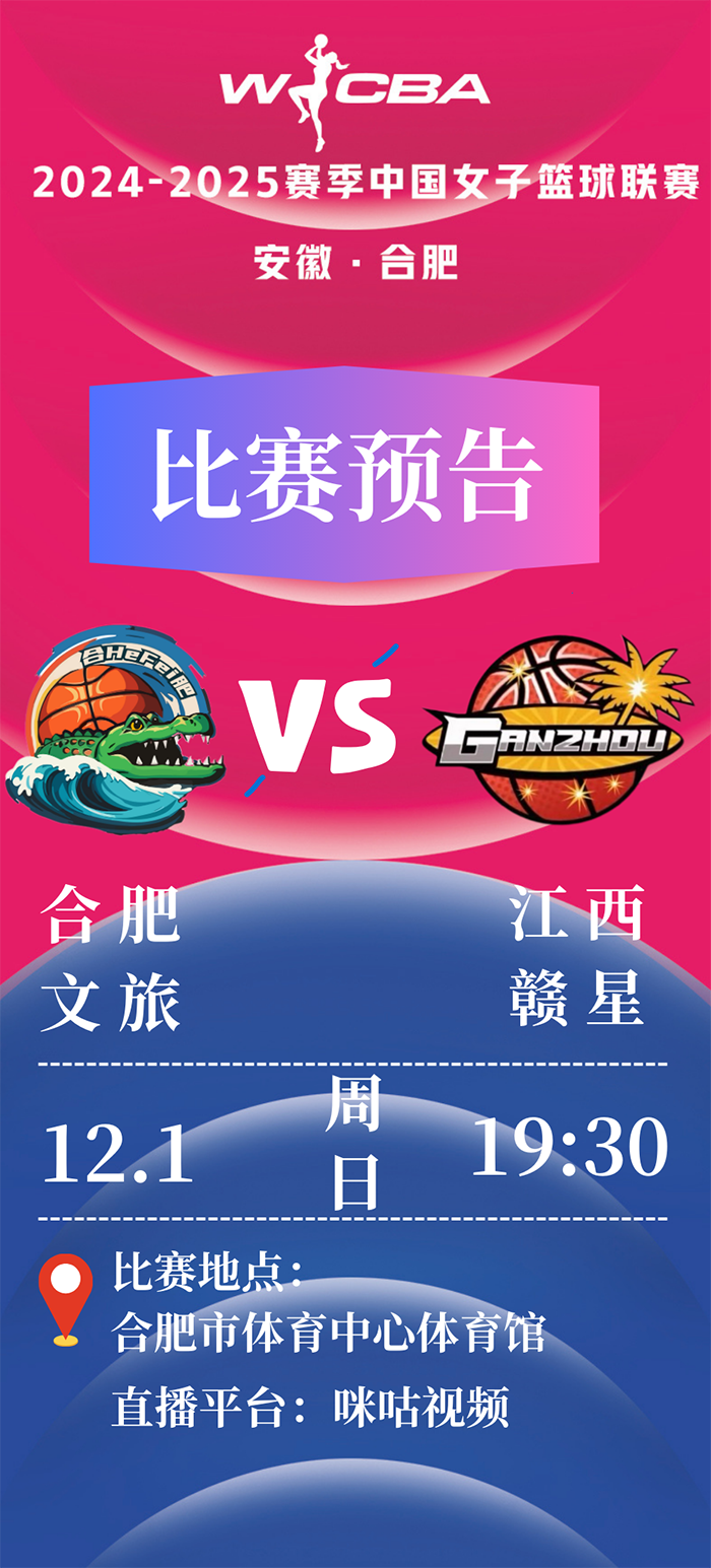 12月1日晚19:30合肥文旅即将在第七轮赛事中迎战江西赣星