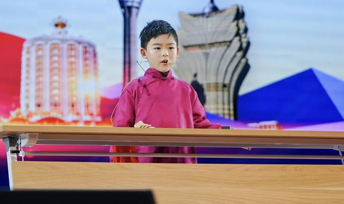 当舞台的灯光洒下,朗诵表演正式拉开帷幕。小朗诵者们用清脆悦耳的声音,将一首首剧目篇章演绎得淋漓尽致。有的小选手朗诵着激昂的爱国诗篇,那铿锵有力的语调,仿佛带着观众穿越历史的长河,感受到先辈们的热血与豪情,每一个重音都像是敲响的战鼓,振奋人心;有的则充满感情地诉说着对梦想的追求对未来的向往,声音轻柔婉转,如涓涓细流流淌入听众的心间。他们用稚嫩的声音,展现出对文字的理解与感悟,让观众沉浸其中,领略到朗诵艺术的独特魅力。