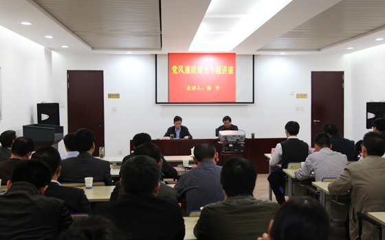 为加强党风廉政建设,贯彻落实全面从严治党要求,巩固和拓展“三严三实”专题教育成果,进一步丰富公司“廉政教育大讲堂”内容,11月6日,政投公司邀请市人大常委会内务司法工作委员会主任张平,开展了一次党风廉政建设专题讲座,公司领导班子成员陈杰、陈继良、文良武、杨兴武、罗钦,各部门干部职工及所属子公司经营班子成员共60余人到场聆听讲座。