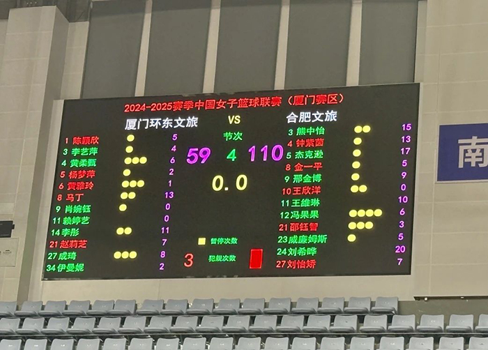 1月10日,2024-2025赛季WCBA常规赛第二十三轮赛事上演,合肥文旅客场挑战厦门环东文旅。本场比赛,合肥文旅女篮全队手感火热,前三节比赛便建立了大比分领先优势。最终,合肥文旅女篮110:59战胜厦门环东文旅女篮。