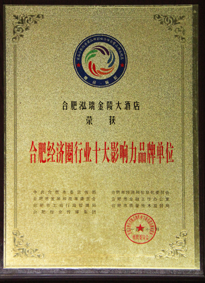 2015年12月9日,“首届合肥经济圈品牌影响力峰会暨品牌成就展”活动在合肥稻香楼隆重举行。合肥泓瑞金陵大酒店荣获“合肥经济圈行业十大影响力品牌单位”,酒店总经理李成勇获“合肥经济圈行业十大影响力品牌人物”称号。