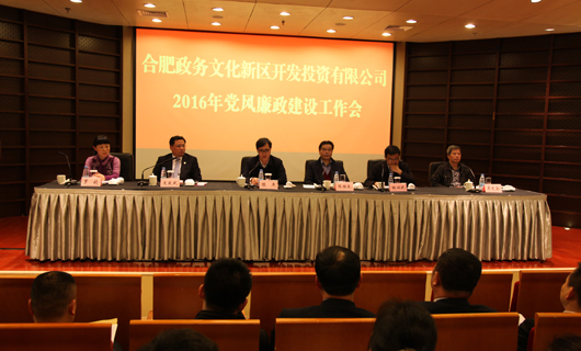 为深入学习贯彻中央纪委十八届六次全会和习近平总书记重要讲话精神,全面落实省纪委九届六次全会、市纪委十届六次全会、市国资委2016年党风廉政建设工作会议部署要求,2016年4月6日下午,政投公司在合肥泓瑞金陵酒店报告厅召开2016年党风廉政建设工作会议。公司领导班子成员陈杰、陈继良、文良武、杨兴武、罗钦,市国资委稽查员吴文会,机关中层干部、全体党员,所属子公司中层以上干部,委托运营单位主要负责人共120余人参加会议。